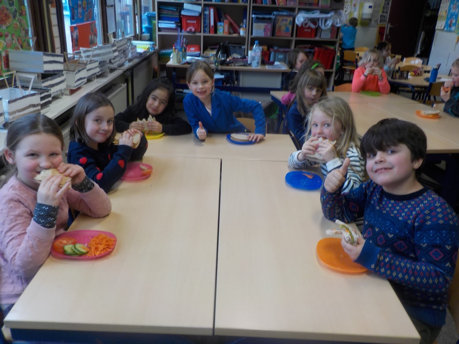 Project "de markt" : rekenen met geld, werken met folders, knutselen, uitstap voorbereiden, naar de bakker, slager en supermarkt, gezond eten!